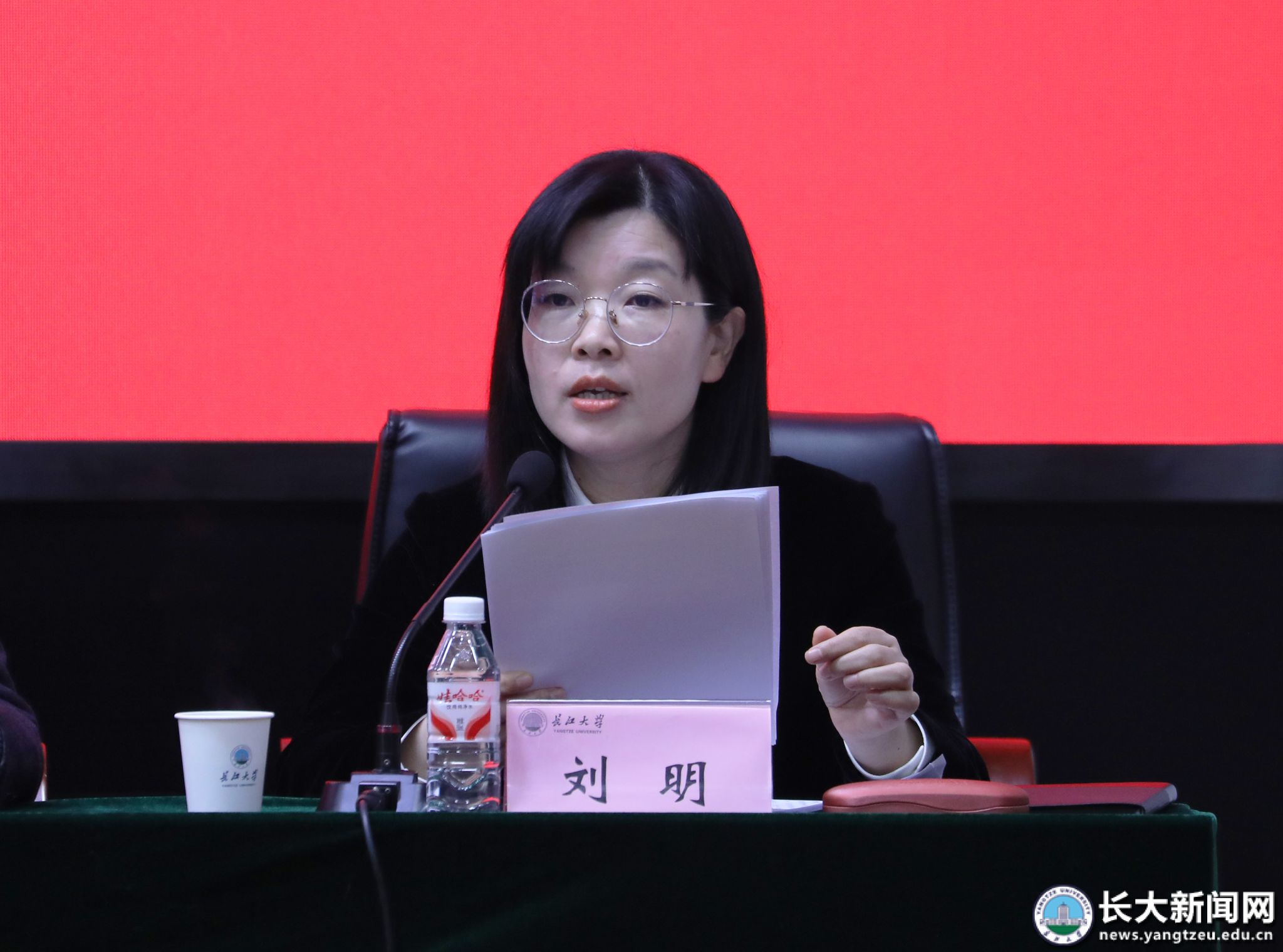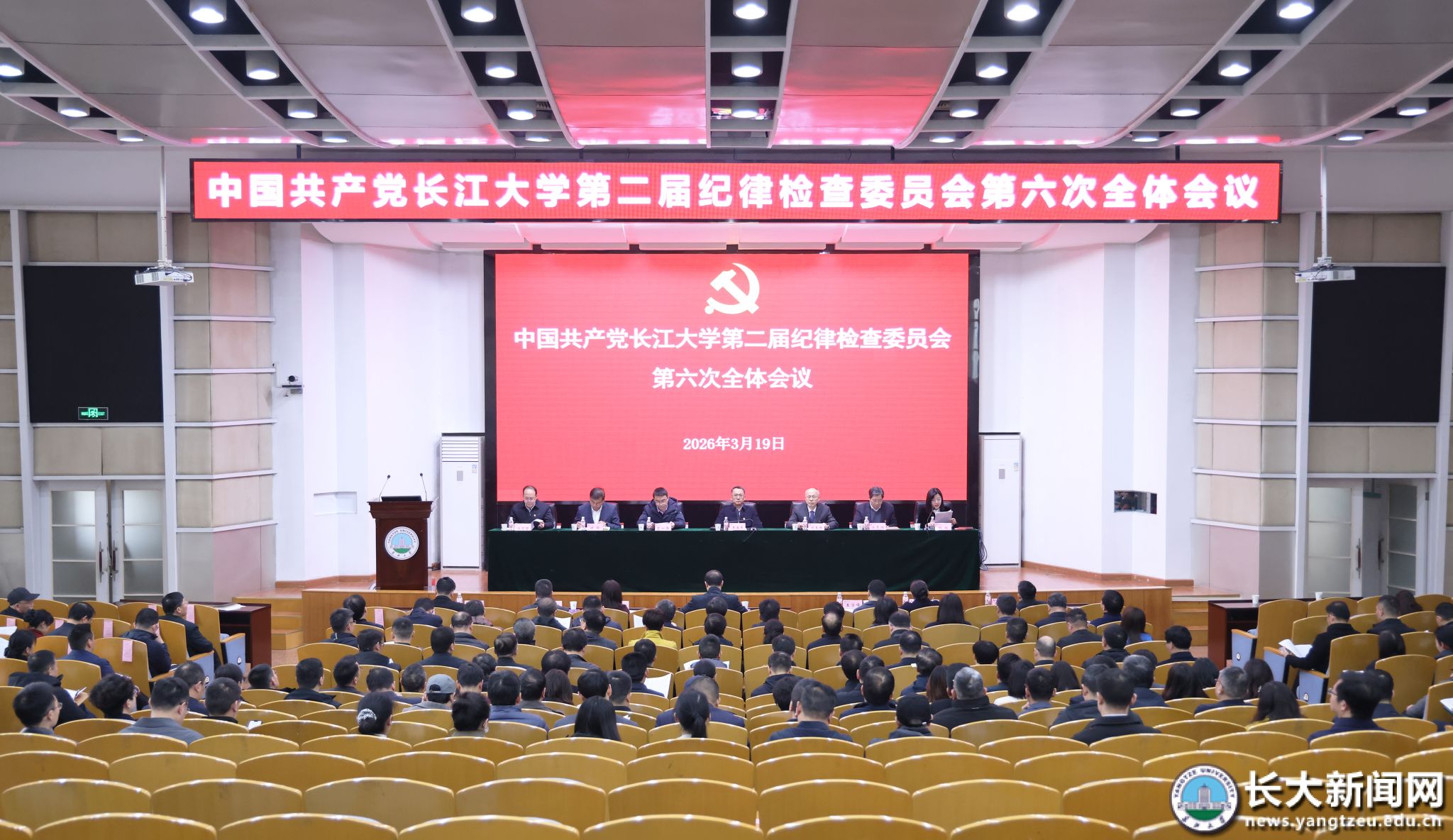 新闻网讯(通讯员 曾盼 记者 刘健/摄)3月19日,中国共产党长江大学第二届纪律检查委员会第六次全体会议在求实报告厅召开。党委书记王建平出席会议并讲话,党委常委、纪委书记、监察专员刘明主持会议。