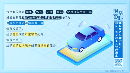 《中国共产党纪律处分条例》第一百一十七条规定,违反有关规定配备、购买、更换、装饰、使用公务交通工具或者有其他违反公务交通工具管理规定的行为,对直接责任者和领导责任者,情节较重的,给予警告或者严重警告处分;情节严重的,给予撤销党内职务或者留党察看处分。