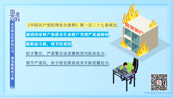 《中国共产党纪律处分条例》第一百二十七条规定,遇到国家财产和群众生命财产受到严重威胁时,能救而不救,情节较重的,给予警告、严重警告或者撤销党内职务处分;情节严重的,给予留党察看或者开除党籍处分。