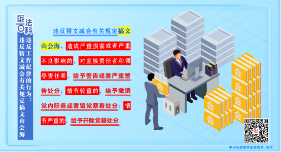 2023年12月修订印发的《中国共产党纪律处分条例》将“违反精文减会有关规定搞文山会海”行为纳入处分范围,规定违反精文减会有关规定搞文山会海,造成严重损害或者严重不良影响的,对直接责任者和领导责任者,给予警告或者严重警告处分;情节较重的,给予撤销党内职务或者留党察看处分;情节严重的,给予开除党籍处分。